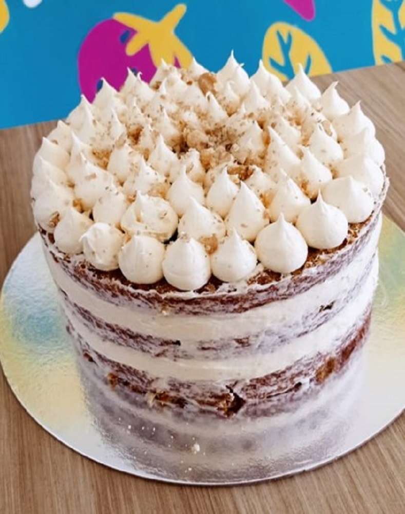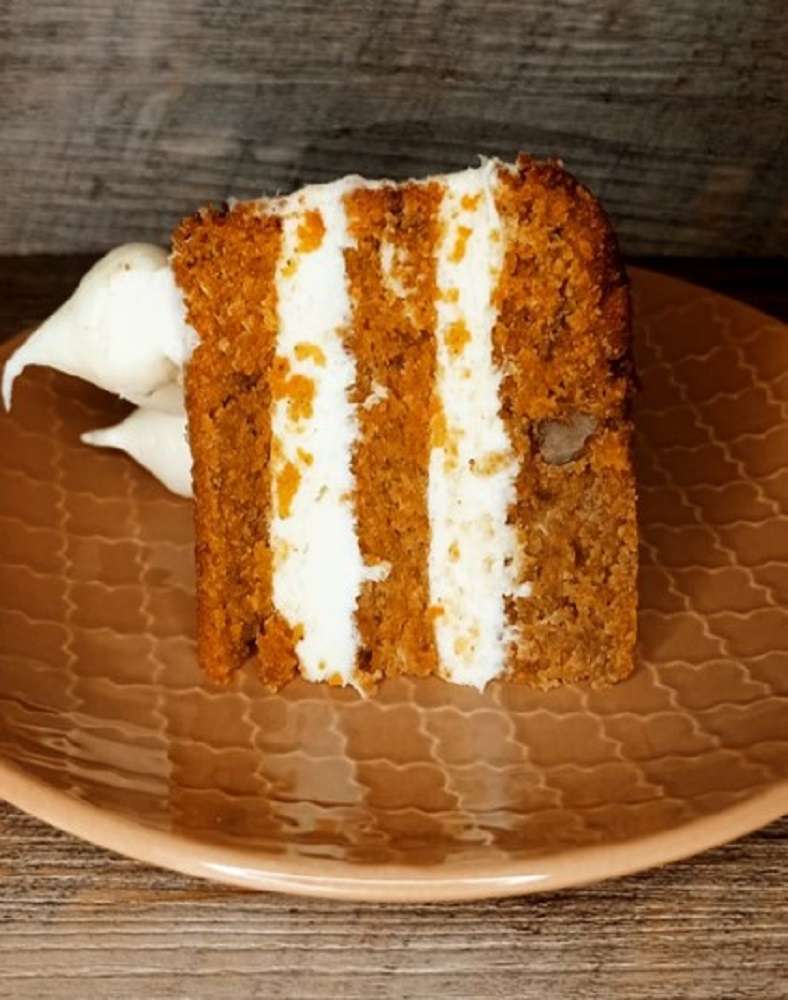 Carrot cake. Delicioso y humedo bizcocho de zanahoria con nueces. Relleno de suave crema en base a queso crema y decorada con crema fresca.